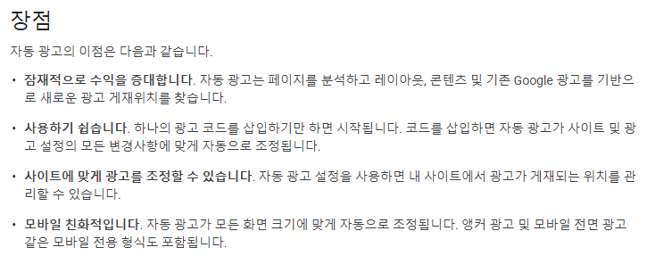이러한 구글 자동광고를 사용하게 되면 장점은 다음과 같습니다.