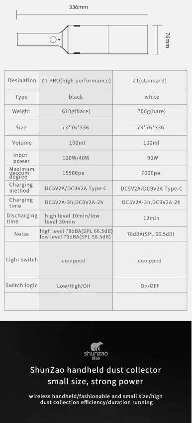 차량용 청소기의 색깔은 흰색과 검정색이 있는데, 모양은 똑같지만 성능 및 무게에서 차이가 좀 납니다. 흰색은 모델명이 Z1이고 검은색은 모델명이 Z1 Pro입니다. 흡입력이 거의 2배 정도 차이가 납니다.