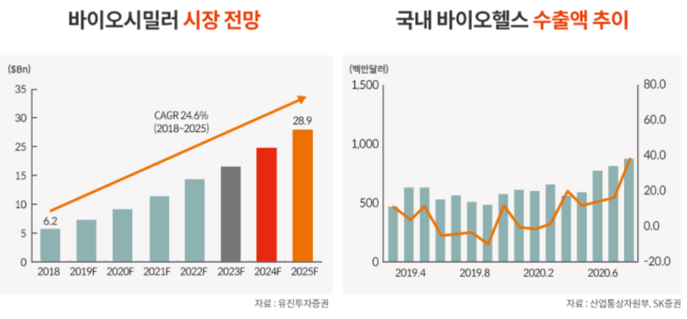 또한, 바이오시밀러 시장에서 떠오르는 강자인 셀트리온도 올해 상반기에 역대 최대의 성과를 냈으며, 신약개발에 힘을 쓰고 있는 SK바이오팜, 유한양행, 한미약품 등오 다양한 분야의 신약을 개발에 노력을 기울이고 있습니다.