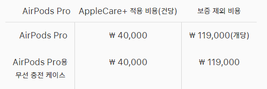 그래서 다음으로 그럼 어떻게 AS를 받아야 할지 알아봤습니다. 전에 듣기로는 에어팟 프로는 AS는 불가능하고 리퍼로 교환만 가능하다고 들은 것이 있었는데, 그것도 맞는 말인지 확인할 겸 우선 에어팟 프로의 AS 정책이 어떤지 알아봤습니다.
