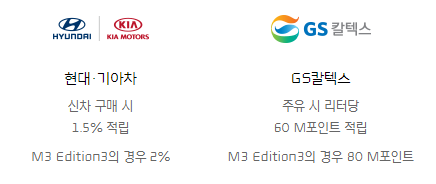 다만, 현대차나 기아차의 신차를 구매할 경우 2%의 M 포인트를 적립할 수 있고,