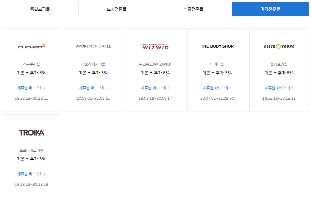 아쉬운 점은 가장 많이 사용하게 되는 대형마트 등의 적립률이 50만원 이상 시, 0.5% 밖에 되지 않고 200만원 이상 사용했을 경우 1%가 된다는 점입니다.