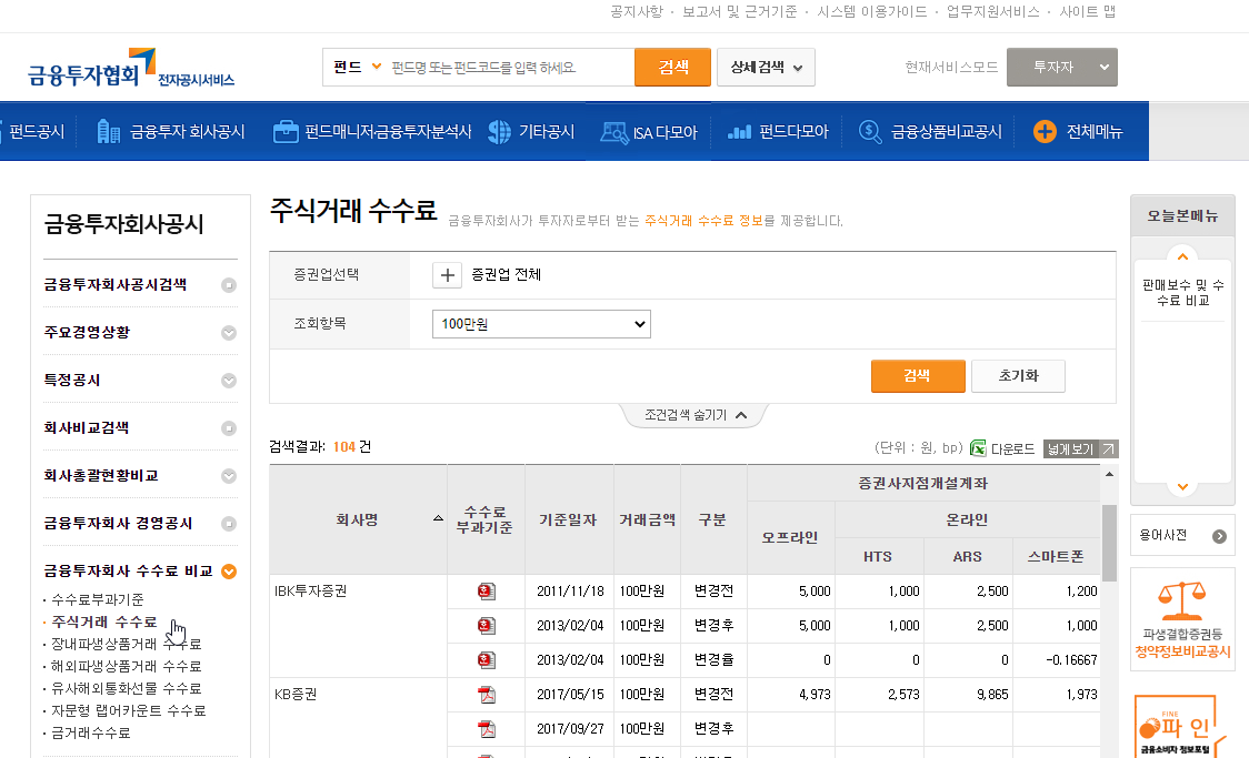 위치는 '금융투자협회 홈페이지'에서 '전자공시시스템'으로 들어간 후 '주식거래 수수료'에서 비교하면 됩니다.